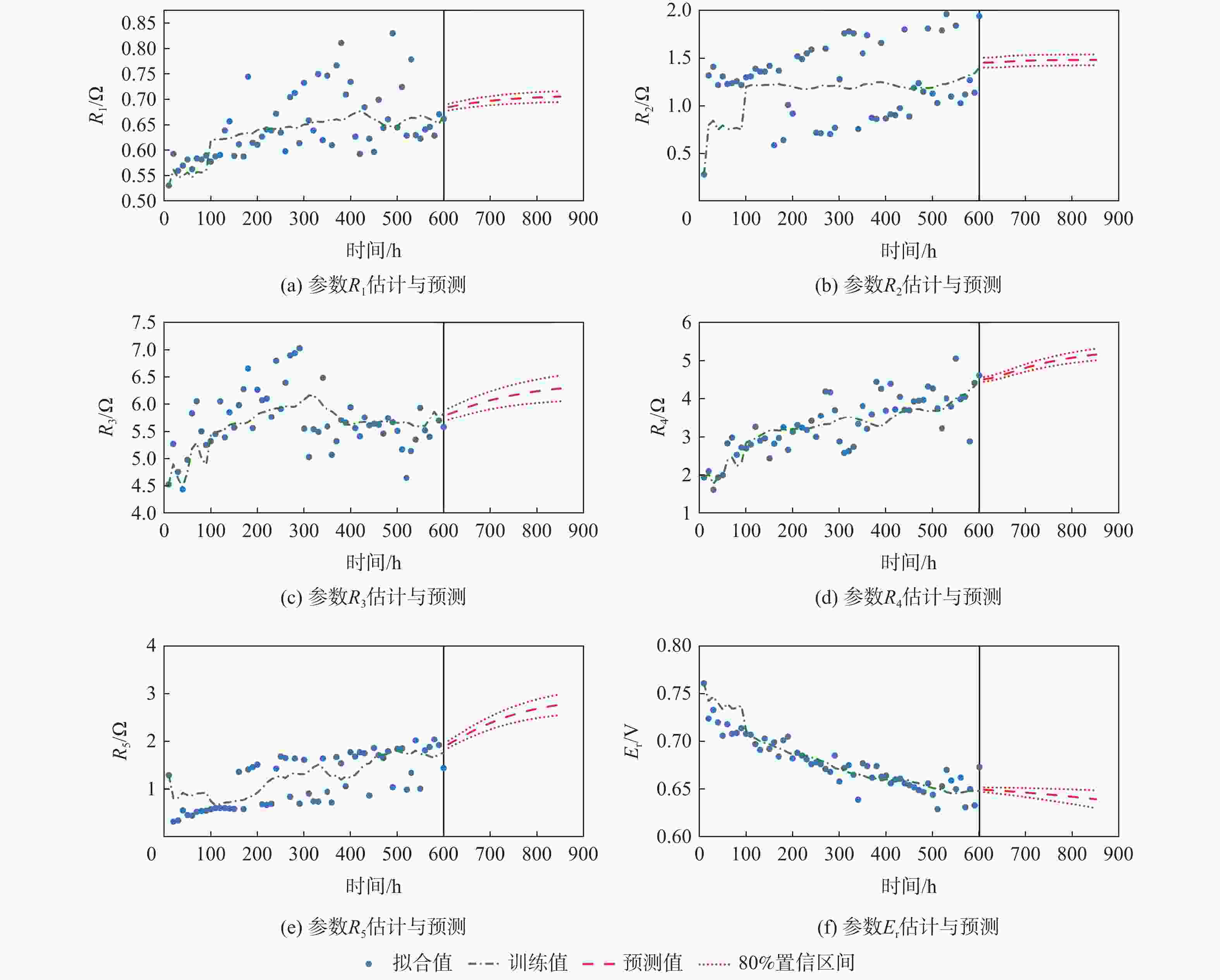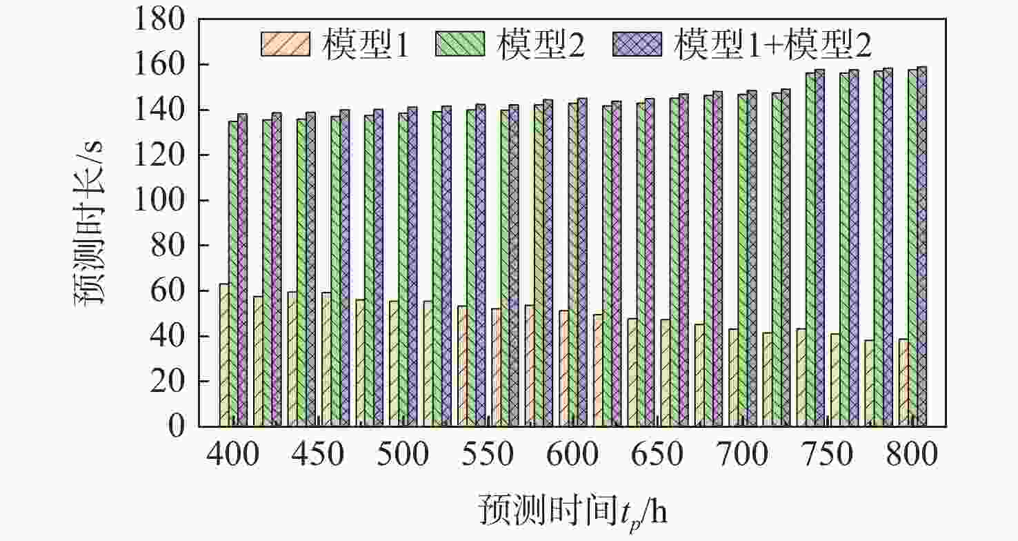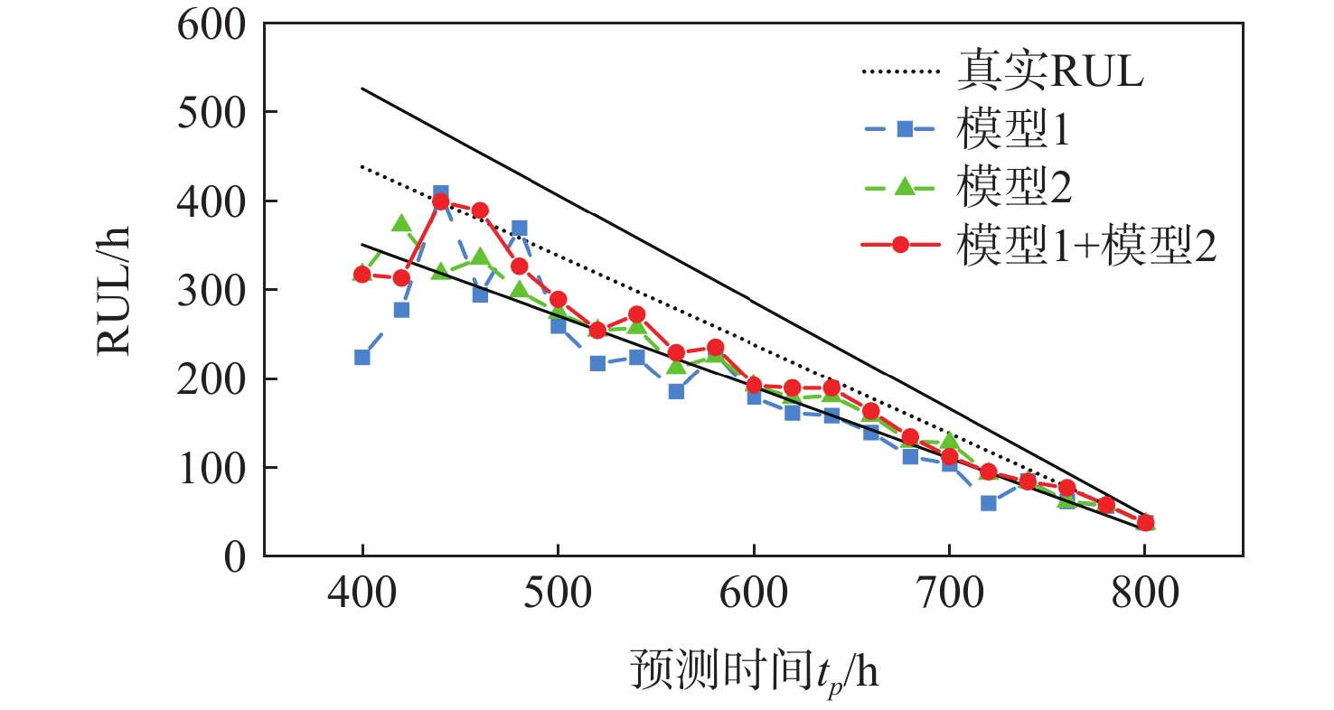 时间/h Er/V R1/Ω R2/Ω R3/Ω R4/Ω R5/Ω 0 0.724 0.531 0.280 4.530 1.940 1.290 90 0.717 0.590 1.220 5.250 2.720 0.551 190 0.705 0.615 1.010 5.560 2.660 1.460 250 0.678 0.635 0.719 5.920 3.000 1.680 340 0.639 0.620 1.550 6.490 3.340 1.770 表 3 各模型 RUL 预测性能评价结果