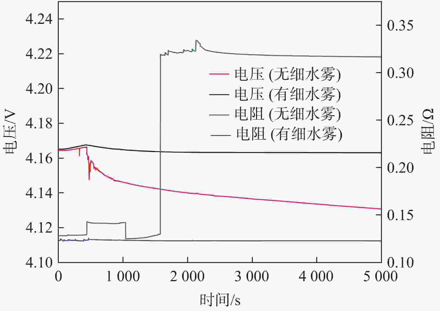 Table 2. Comparison of charge and discharge performance of batteries with or without water mist at different heating degrees